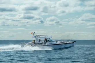 Ultra-high performance Deep-V hull for Atlantic sea conditions.