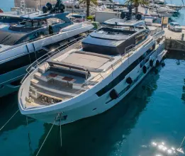 Experience luxury and performance with the Astondoa AS100 Century, a stunning example of Spanish craftsmanship and design. Featuring five spacious cabins, this yacht offers exceptional comfort for extended cruising or entertaining guests in style. Whether entertaining on the expansive flybridge or cruising in style, the Astondoa AS100 Century delivers elegance and power with every journey. Fully equipped and meticulously maintained, this yacht is ready for immediate enjoyment. Dimensions: * Length: 30.52m * Breadth: 6.60m * Draft: 3.30m * GT: 178 t * NT: 53 t Engine 1: * Engine Make: MTU * Engine Model: 16V 2000 M86 * Engine Year: 2017 * Total Power: 2186 hp * Engine Hours: 1722 hrs * Engine Type: Inboard * Drive Type: Direct Drive * Fuel Type: Diesel * Propeller Material: Bronze Engine 2: * Engine Make: MTU * Engine Model: 16V 2000 M86 * Engine Year: 2017 * Total Power: 2186 hp * Engine Hours: 1726 hrs * Engine Type: Inboard * Drive Type: Direct Drive * Fuel Type: Diesel * Propeller Material: Bronze Tankage: * Fuel tank: 10,900 ltrs * Fresh water tank: 2,100 ltrs * Holding tank: 834 ltrs * Gray tank: 120 ltrs Hull: * Type: Modified V planning type, with flared bow and hard chines * Material: Fiber Reinforced Plastic (GRP) * Exterior hull: White gelcoat Accommodation: * Full-beam Master stateroom, with double bed, sofa on the port side, large head, wardrobe * 3 Guest VIP staterooms, with double bed, head, wardrobe * 1 Guest VIP stateroom, with twin bed, head, wardrobe * Crew cabins and crew mess room under Galley * Large galley with all required amenities and equipment, with the stairwell leading to the crew cabins * Spacious saloon with large sofa, table next to, dinette for 10 persons * Navigation bridge with panel and sofa * Alfresco dining area on aft with large sofa and dinette Deck: * Deck covered in teak * Deck sideways and fore deck in teak * Hydraulic operated swimming platform in teak * Swimming ladder * Large hydraulic operated garage with access from swimming platform. * Electrohydraulic 3 sections telescopic gangway with teak walkway and guard rails on port side providing access from the dock * Sundeck cushions forward * Bow dining settee with foldable bimini * Protective covers for aft alfresco seating, aft deck table, foredeck sundeck cushions, foredeck dinette settee * Two anchor windlasses, remotely operated with galvanised anchor and anchor chain * Two electric winches for aft mooring ropes * Moorings * Fenders * Windscreen and side glass cover in black mesh * Fresh water deck wash outlets forward and aft Flybridge: * Stairs to flybridge in teak * Flybridge decking in teak * Two wet bars with 2 fridges, icemaker, el. BBQ, 4 bar chairs * Cockpit console * Hydromassage * Carbon poles for bimini above hydromassage * Sofas * Sun deck cushions - NEW * Hardtop Flybridge Navigating station: * Chart plotter with multiscreen - Simrad * Steering, Engines Oper. Controls * Engines Instruments / Alarms. * Bow and Stern Thruster oper. * VHF * Auto Pilot * Electric Switches Panel * Rudder Indicator * Flaps Controls * Level Indicator * Windlass Control * Search light oper * Seat for three Galley: U-shaped galley type with: * Stainless steel sink * Miele el. induction stove with 3 burners * Miele el. oven * Microwave * Wine cooler * Two large fridges with ice maker * Freezer * Dishwashing machine * Exhaust hood * Coffee maker Electrics: * DC power:V * AC power:V * Two generators Kohler by 50 kW * Watermaker * Sea Power Stabiliser system * Bow and stern thruster * Trim tabs control * CCTV system for whole yacht * A/C system covering all staterooms, saloon, galley * Electric anchor windlass * El. bilge pump * Bilge alarm * Engine batteries * Service batteries * Generator batteries * Battery chargers - Mastervolt * Engine room fans * Air compressor * Fire alarm control panel * Shore power connector * Water heater * Water purifier * Wifi system * Radio+MP3+AUX - Sound system * TV in each stateroom, saloon and crew cabin * Shore supply 220V * Shore plug 220V * Windscreen wipers * El./vacuum toilets * Black water pump * LED lights in cockpit, steps, platform, sidewalks Navigational bridge: * Chart plotter - Simrad touch * Radar * Autopilot * GPS * Log speed * Depth sounder * Navtex * VHF * AIS * Electric Switches Panel * Rudder Indicator * Flaps Controls * Searchlight with el. controller * MTU Engine data displays for port and starboard engine * MTU docking joystick * Fire-fighting system monitor * Horn * Navigational lights Third operation station on Stbd aft for easy and safe docking, equipped with: * Engines oper. controls * Engines Start / Stop Buttons * Bow / Stern Thrusters oper. controls Safety equipment: * 2 Life rafts * Life jackets * Immersion suits * Safety equipment storage including SCBA and two * Fireman’s outfit * Engine fire-fighting activation system - Novec 1230 * Portable FFE * Fire/smoke detectors * EPIRB * SART Additional: * Tender - Williams turbojet 445 * Insulation to reduce external heat coming through to the interior of the vessel * Laundry and dryer machine * Safe * Tool kit