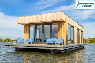 The base consists of a frame of galvanized steel. Equipped with catamaran floats and with a basement box where many things can be stored. The houseboat has a living area of over 51 m²and has a spacious roof terrace of 24 m².