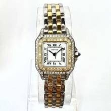 Gehäuse: Glänzender Edelstahl, besetzt mit speziell gefassten natürlichen Diamanten, gepunzt 'Cartier' und gestempelt 'Quartz', 'Swiss Made', 'or et acier', '1120' und Seriennummer