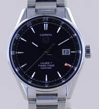 Hervorragend als sportliche Alltagsuhr und auch im Bereich Freizeit. Die zweite Zeitzone wird mittels GMT-Zeiger und blauer Pfeilspitze realisiert. Die 24h-Skalierung liegt auf dem inneren Zifferblattring. Im Inneren überzeugen, Tag-Heuer-typisch, beste Verarbeitung und bewährte ETA-Fertigungsqualität.