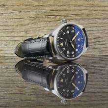 Armband: schwarzes Lederarmband (nicht IWC) & IWC Stahl Dornschließe