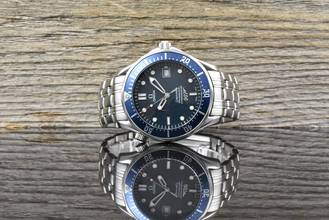 Lieferumfang: blaue Limited Edition Omega Box mit Überkarton (mit Patina) & Garantie Zertifikat aus dem Jahr 2003, Limited Edition Booklet, Gebrauchsanleitung und ein Karten Etui mit Patina