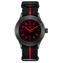 red sapphire crystal with anti-reflective coating on both sides | black rubber strap (22mm lug width) + 1 black red textile Nato strap