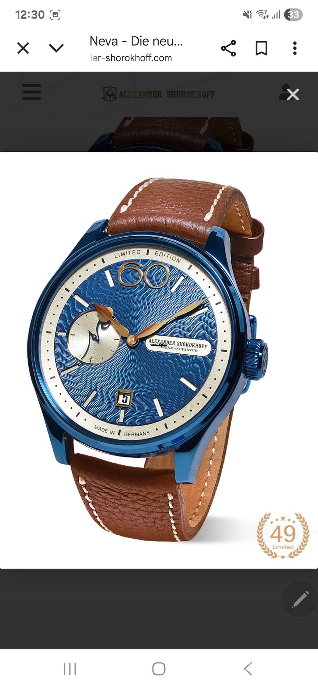 Wellenförmig guillochiert, blau mit silberfarbenem Subdial