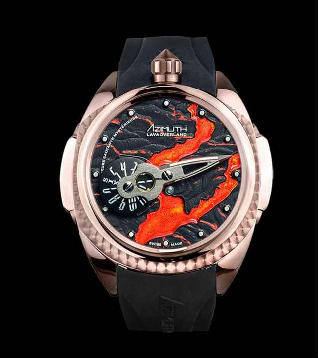 Die 2021 Raumschiff Predator Lava Overland ist das Ergebnis der langjährigen Liebesbeziehung zwischen Azimuth und der Welt der Science-Fiction - eine Obsession, die einige der ikonischsten Kollektionen der Uhrenmarke wie Mr. Roboto, Spaceship und Twin Turbo hervorgebracht hat.