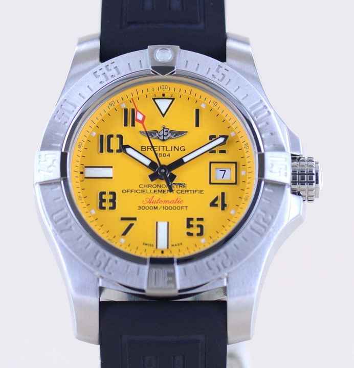 Breitling Avenger II Seawolf Stahl Yellow Dial Kautschukband Automatic B+P 45.5mm