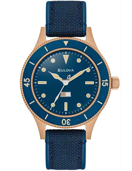 Zusätzliche Freude an Ihrer neuen Bulova Uhr wird Ihnen das hochwertig verarbeitete Armband aus Textil, Silikon – Farbe: Blau – mit Dornschließe bereiten. Das Textil, Silikon-Armband bietet einen hohen Tragekomfort und kann bis zu einem maximalen Handgelenkumfang von 220 mm getragen werden.