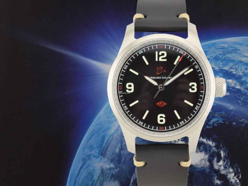 Diese Uhr wurde aus dem Stahl der Turbine gefertigt, die eine F104 über die Schallmauer trieb, und verbindet die Anforderungen des Fliegens mit dem Streben nach Eleganz. Das schwarze, körnige Zifferblatt bildet den perfekten Kontrast zu den großen Ziffern und optimiert die Lesbarkeit. Die Indizes sind mit Superluminova beschichtet, was ein schnelles und intuitives Ablesen ermöglicht. Entspiegeltes Saphirglas, große Krone für besten Halt. Von Hand satiniertes Gehäuse.