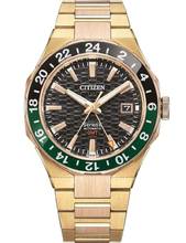 Das Herzstück dieses Zeitmessers ist ein Automatik Uhrwerk, das, wie für Citizen Uhren üblich, eine präzise Zeitmessung garantiert und folgende Funktionen bereitstellt: 24-Stunden, Datum, GMT, Minute, Sekunde, Stunde.