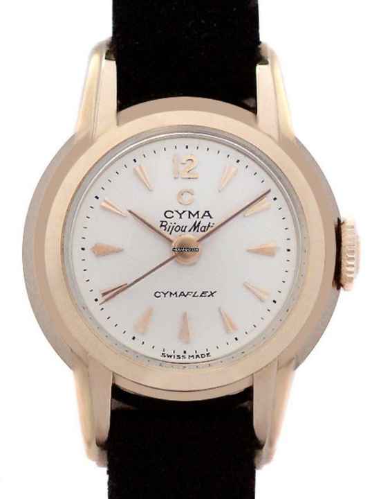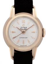 Zifferblatt: versilbertes originales Zifferblatt, aufgesetzte Rose Gold Markierungen und arabische " 12 " und Cyma - Logo, Rose Gold Stabzeiger, Sweep Second