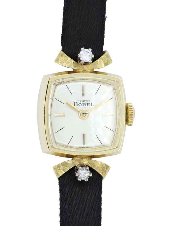 Modell: Handaufzug Damen Ernest Borel Armbanduhr mit 2 originalen Diamanten auf den verzierten Bandanstößen