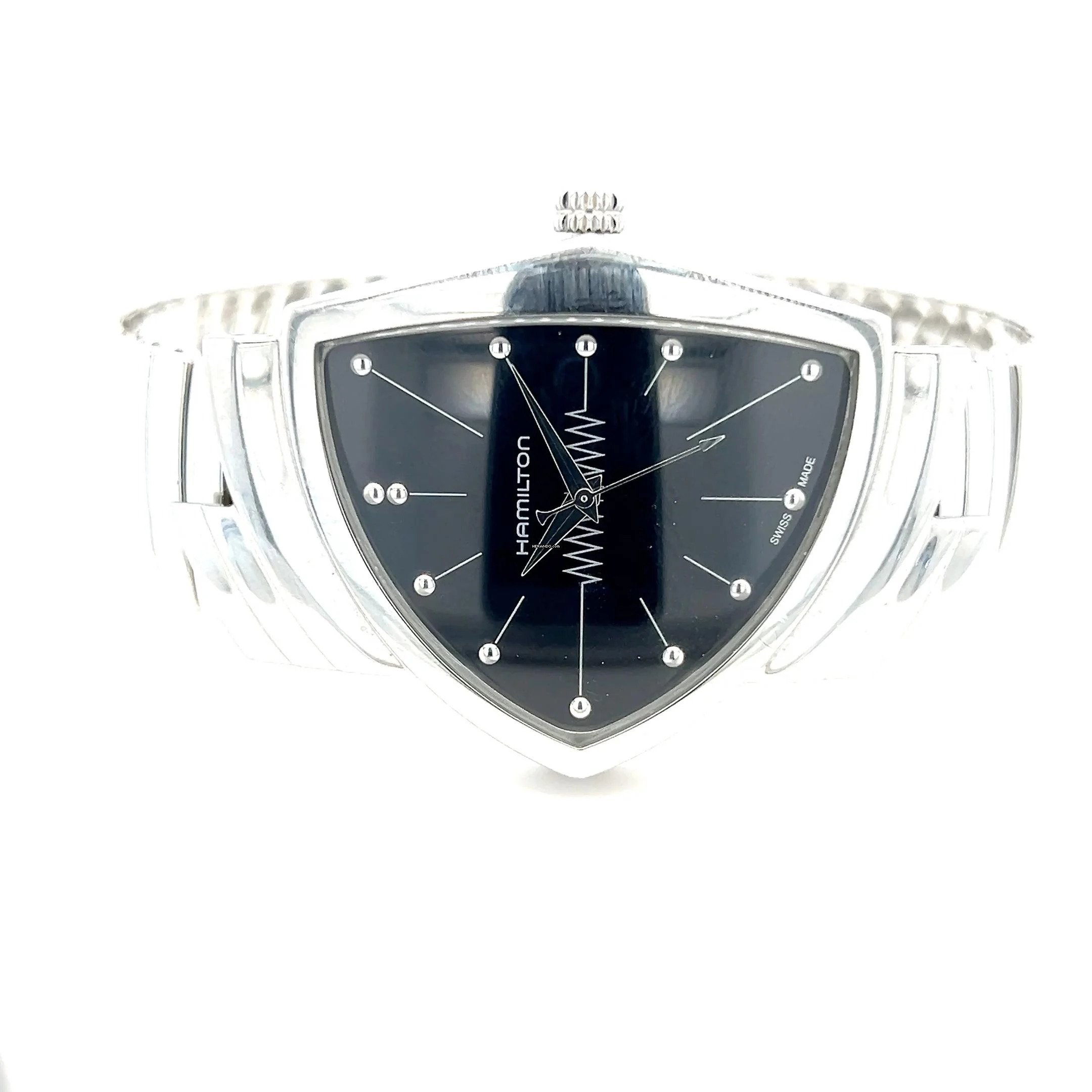 Zum Verkauf steht eine Hamilton Ventura mit dem markanten dreieckigen Gehäuse – ein echter Designklassiker, bekannt als die erste elektrische Armbanduhr und berühmt durch Elvis Presley.