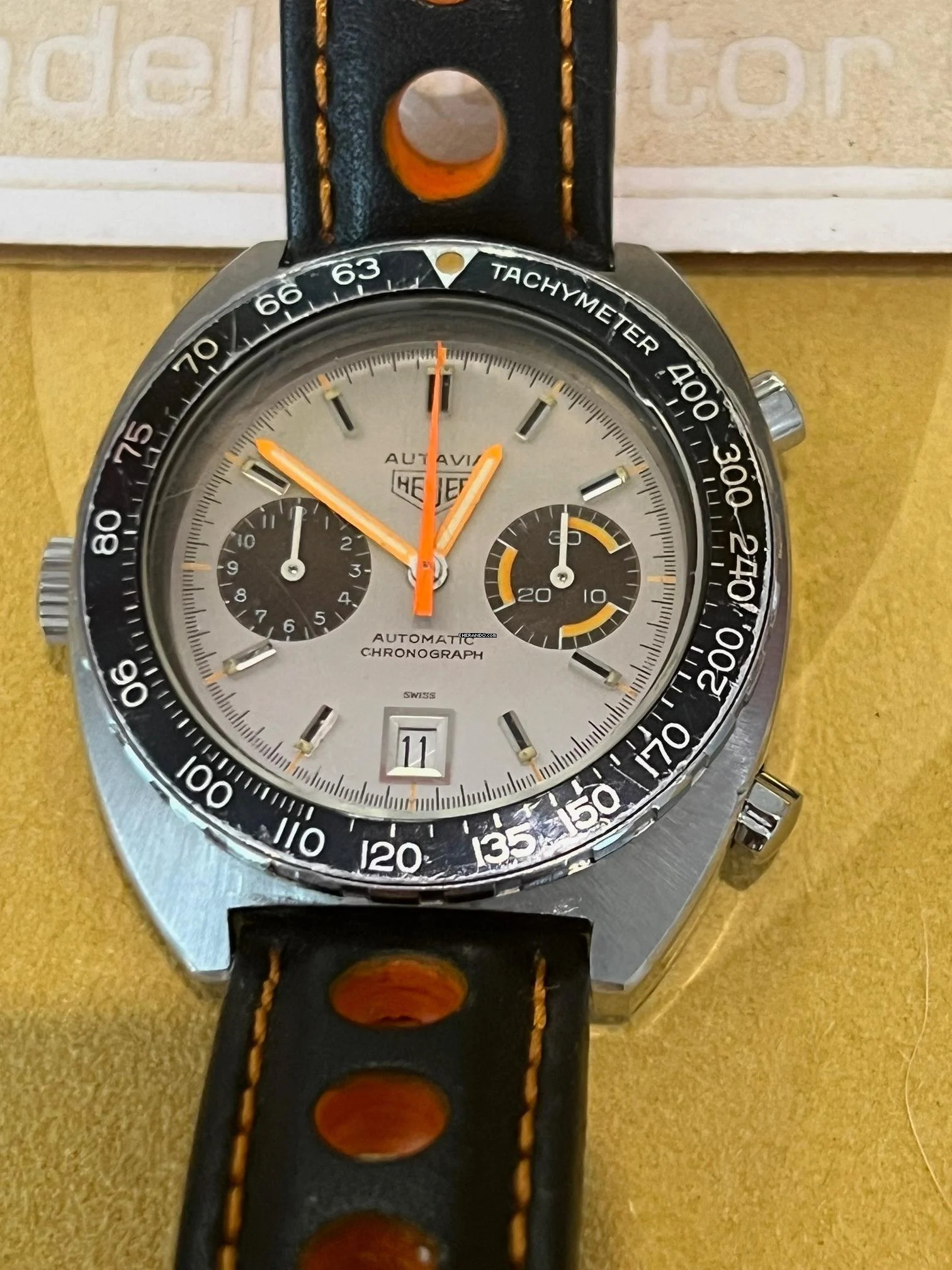 original Heuer Autavia 11630 " Orange Boy" mit Service Box und neuem Service !