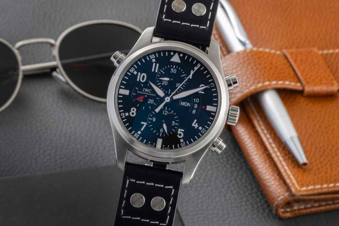 IWC Schaffhausen Pilot Double Chronograph Automatik Stahl Herrenuhr Ref IW377801