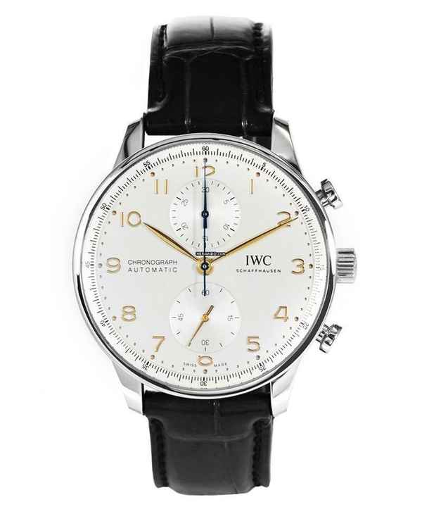 ist eine ikonische Uhr aus der renommierten Portugieser-Kollektion von IWC Schaffhausen. Das Gehäuse der Uhr besteht aus Edelstahl und hat einen Durchmesser von 41 mm. Das Zifferblatt ist in einem eleganten Silberton gehalten und verfügt über zwei Hilfszifferblätter für die Chronographenfunktionen.