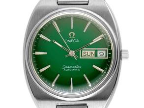 Omega Seamaster Day-Date Stahl Automatik Armband Stahl Gehäuse Edelstahl poliert und satiniert, Kissenförmig, Gehäusemaße ohne Krone (L x B x H) 40 x 35 x 11,7mm. Armband Edelstahl poliert und satiniert, Faltschließe Edelstahl mit Hersteller-Logo. Zifferblatt grün / schwarz verlaufend mit aufgesetzten Edelstahl Indexen und Edelstahl Zeigern. Uhrwerk Automatik, Omega Manufakturkaliber 1022 mit 23 Edelsteinen. Anzeige von Stunde, Minute und Sekunde über Zeiger aus der Mitte, Wochentagsanzeige in Englisch und Datumsanzeige mit Schnellverstellung bei 3 Uhr. Plexiglas gewölbt. Krone mit Hersteller-Logo. Boden Edelstahl graviert. Gewicht der Uhr inklusive Armband 103g, Länge des Armbandes inklusive Gehäuse 205mm. Referenznummer: 166.0213.1, ID: P226128560126H-4200, Artikelnummer: 10000084250. Mit Gangkontrolle und kompletter äußerlicher Aufarbeitung von Januar 2026. Original Omega Box sowie Watchregister Auszug von Januar 2026, The Watch Register Zertifikat / ohne Eintrag (Internationale Datenbank für verlorene oder gestohlene Uhren). Superschnäppchen, extrem seltenes Sammlerstück. Sehr guter Zustand. Lieferzeit sofort. Inklusive certified pre owned Siegel / Uhrenpass mit einem Farbbild, der genauen Beschreibung sowie dem Wiederbeschaffungswert der Uhr über 4200,-€ und 1000 Tage Garantie ab Kaufdatum.