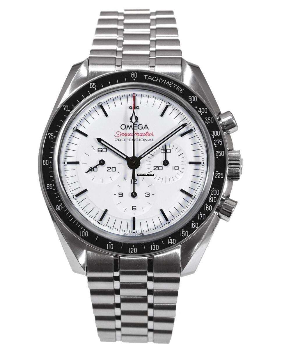 Die Omega Speedmaster Moonwatch Professional verfügt über ein robustes Edelstahlgehäuse mit einem Durchmesser von 42 mm und einer Wasserdichtigkeit von bis zu 5 atm. Das Zifferblatt der Uhr ist in einem klassischen Weiß gehalten und verfügt über Leuchtzeiger und Indexe für eine gute Ablesbarkeit bei Tag und Nacht.