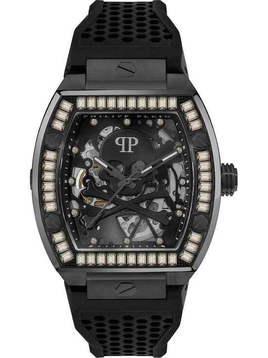 Zusätzliche Freude an Ihrer neuen Philipp Plein Uhr wird Ihnen das hochwertig verarbeitete Armband aus Silikon – Farbe: Schwarz – mit Dornschließe bereiten. Das Silikon-Armband bietet einen hohen Tragekomfort und kann bis zu einem maximalen Handgelenkumfang von 210 mm getragen werden.