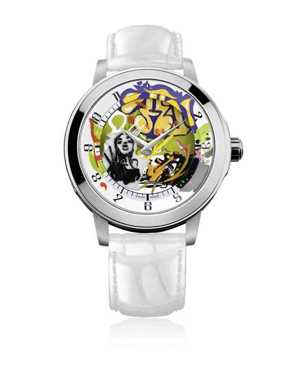 43 mm large transparent watch. Steel case.