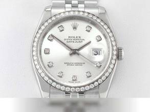 Fantastisches silbernes Zifferblatt mit 10 strahlenen Diamanten besetzt, original von Rolex