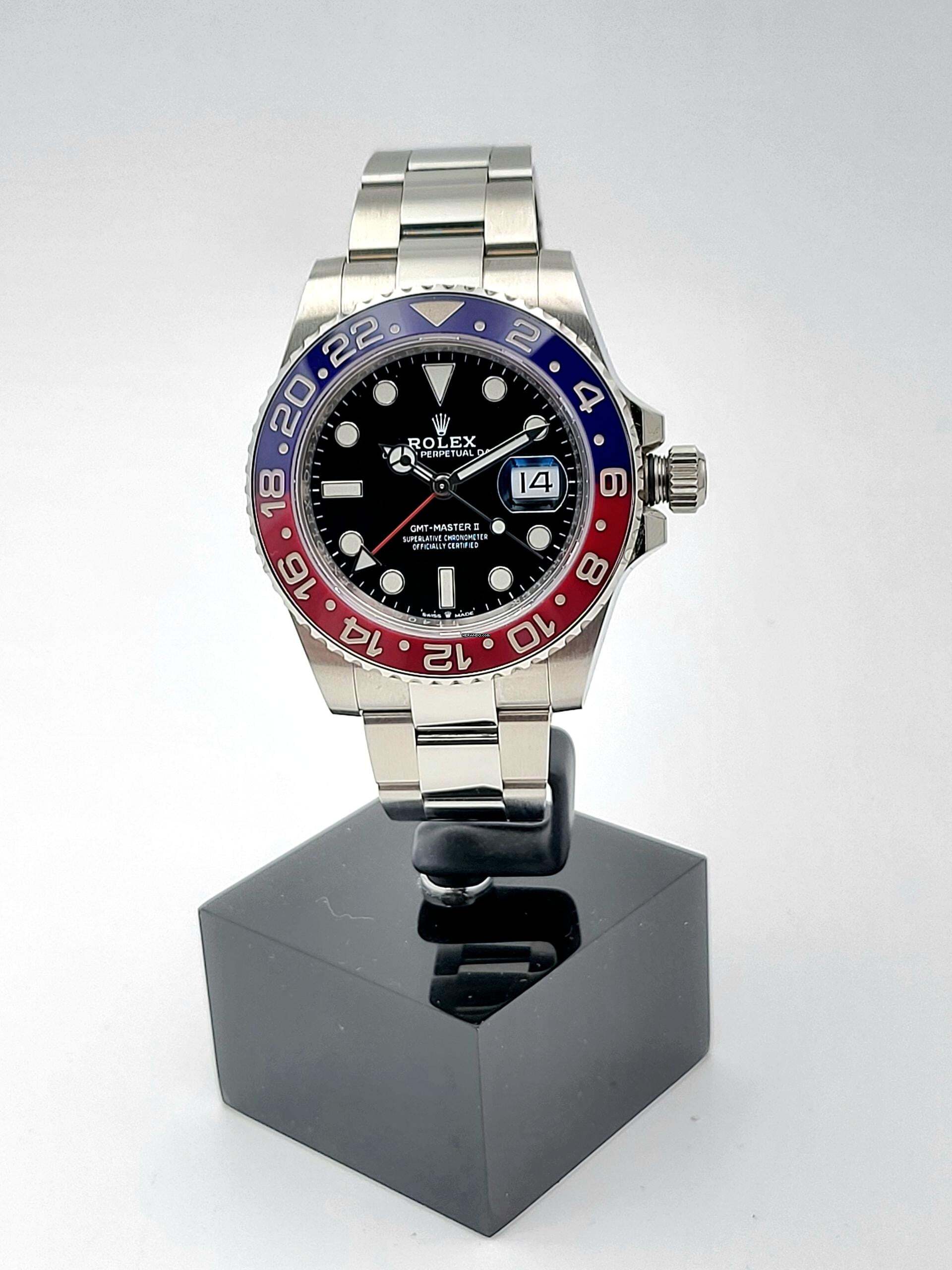 For sale is this nice Rolex GMT Master II Pepsi 41 mm. steel with black dial and blue/red ceramic bezel on Oyster-Bracelet.