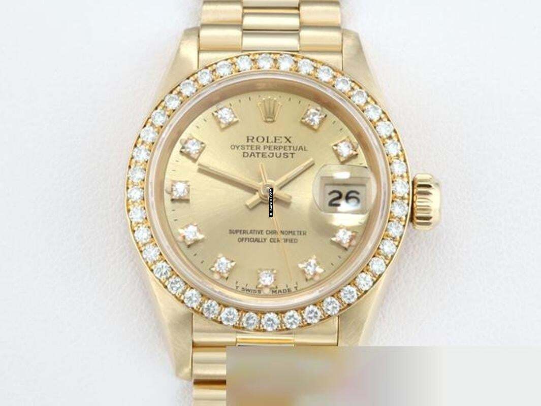 Rolex Lady-Datejust Gelbgold 750 1991 Lc100 Diamanten Brillanten Automatik Gold Damen 18kt Yellow Gold President-band Chronometer Oyster