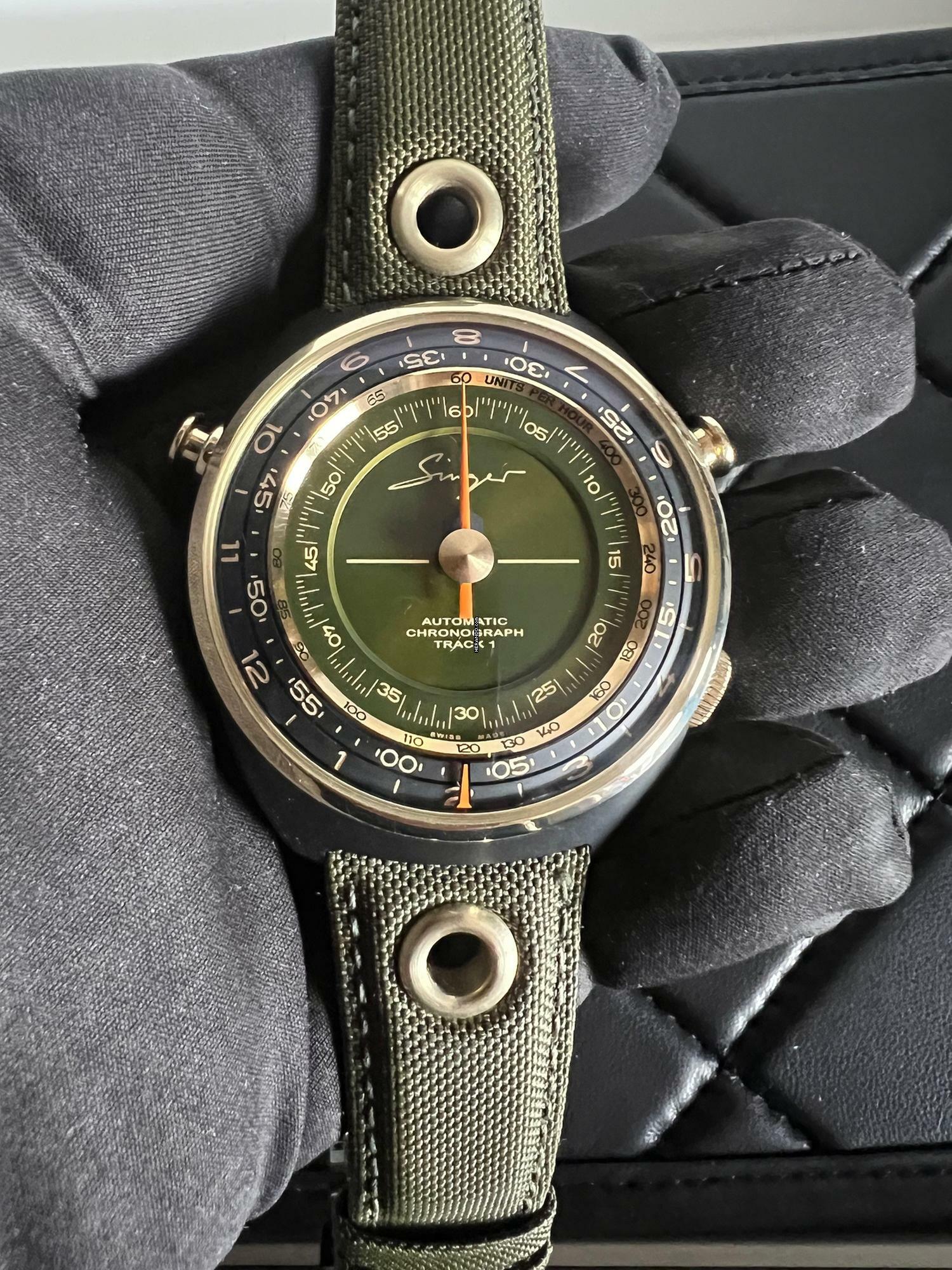 Automatic mechanical movement. Column-wheel chronograph, AgenGraphe, Singer Reimagined exclusive 3-60 indication centralized instantaneous chronograph hours (60 hours) and minutes (60 minutes) sweep chronograph second hand (60 seconds)