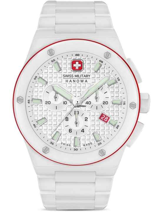Zusätzliche Freude an Ihrer neuen Swiss Military Hanowa Uhr wird Ihnen das hochwertig verarbeitete Armband aus Keramik – Farbe: Weiß – mit Faltschließe bereiten. Das Keramik-Armband bietet einen hohen Tragekomfort und kann bis zu einem maximalen Handgelenkumfang von 220 mm getragen werden.