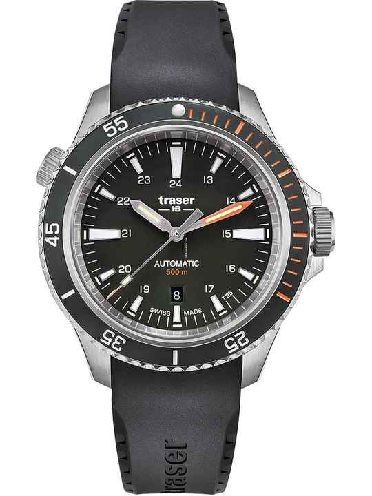 Zusätzliche Freude an Ihrer neuen Traser Uhr wird Ihnen das hochwertig verarbeitete Armband aus Kautschuk – Farbe: Schwarz – mit Dornschließe bereiten. Das Kautschuk-Armband bietet einen hohen Tragekomfort und kann bis zu einem maximalen Handgelenkumfang von 230 mm getragen werden.