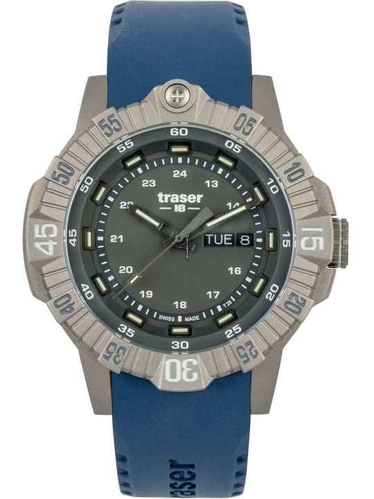 Die Traser Herrenuhr 110667 ist ein sportlicher Begleiter aus der Modell-Serie Tactical Grau Titan 46mm. Eine perfekte Wahl, wenn Sie einen Zeitmesser mit einem lebendigen Look suchen.