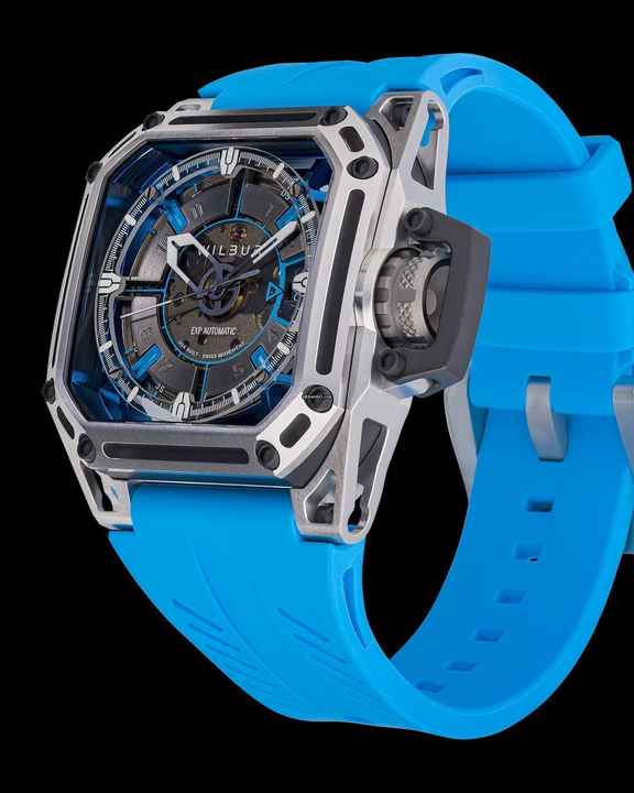 - Exoskelett aus Stahl & Gehäusekern aus schwarzer Keramik mit blauen Zifferblattdetails und Space Frame.