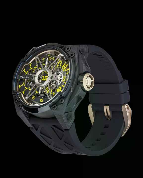 The JW1.5 CF configuration combines machined billet carbon fiber with multi-finish DLC black titanium. Titanium-nitride champagne gold details are retained selectively as technical accents, maintaining continuity with the broader JW1 material system.