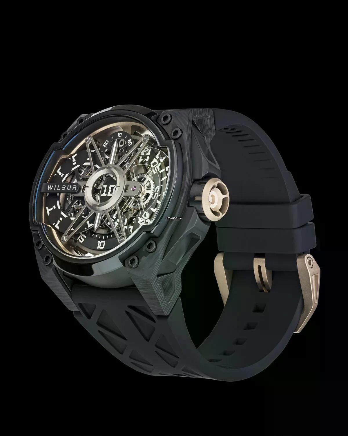 Primary strap: black silicone “Landing Gear” strap with quick-change system and WILBUR hardware.