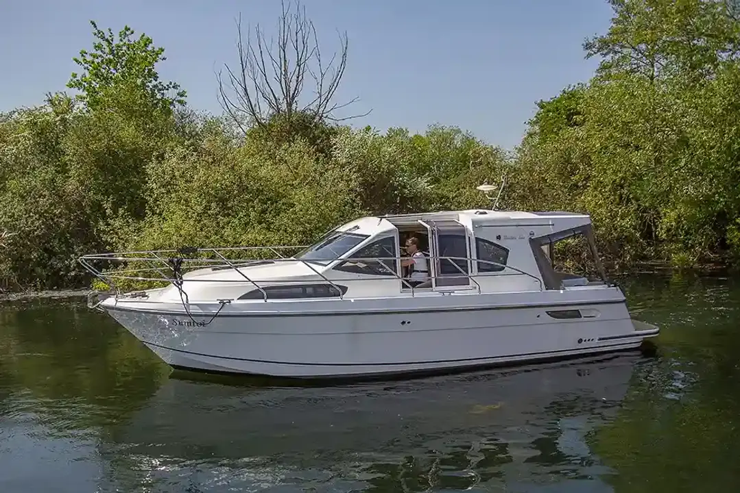The featured vessel, Sumtoi, is a testament to Haines' dedication to quality & craftsmanship. The Haines 32 Sedan is more than just a boat; it's a gateway to a lifestyle of exploration and relaxation. Sliding doors and the Optional port side door by the helm open up the interior, ensuring everyone onboard feels connected, whether inside the cabin or outside enjoying the weather. The boat features a double berth master cabin located at the bow, while additional space in the saloon area caters to guests. A luxurious walnut finish exhumes quality throughout the vessel, complemented by a sophisticated avonite worktop in the galley area, reflecting a modern yet warm ambiance. This reliable Nanni engine ensures smooth and efficient navigation.. Equipped with bow and stern thrusters, the boat is easy to handle and moor, providing assurance and control in various marine environments. Sumtoi is presented in "as new" condition and now at over £100,000 less than a new build today. Newly surveyed, polished and antifouled "Sumtoi" is ready to immediately make use of.