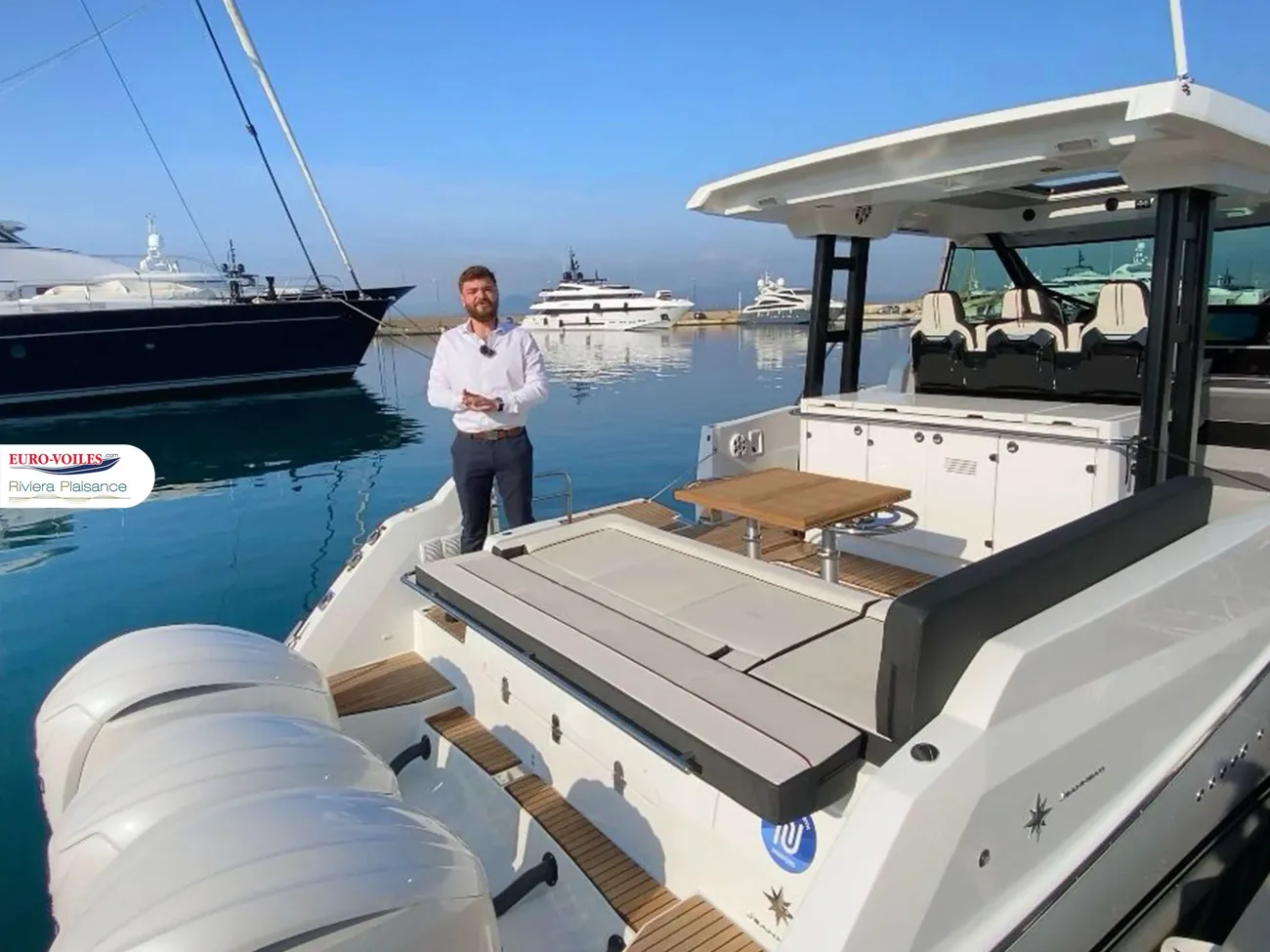 NEW FOR 2025 – AVAILABLE IMMEDIATELY Exclusive offer on the Cannes press trials boat. Now available in its most elegant version with a high protective windshield, take advantage of a special deal on this brand-new Cap Camarat 12.5 WA, powered by triple 300HP Yamaha white engines with joystick control. Fast, sporty, social, and open to the sea – the perfect boat for anchoring. New Features for 2025 Now equipped with a high windshield, offering the perfect balance of protection and elegance. Discover its sporty T-Top and high-tech helm station, featuring dual Garmin screens for a seamless navigation experience. Fully equipped with air conditioning at dock and offshore capability, making it ideal for exploring Corsica and stunning coastal areas. Available for visits and sea trials by appointment. Contact us now to experience its exceptional indoor and outdoor living spaces. Special Price on This Demonstration Boat Available from early May 2025. Be among the first to test it during our exclusive event at Cannes Port Canto by appointment only. Luxury, Comfort, and Exceptional Performance Designed for unforgettable moments at sea, with: Expansive sunbathing areas for ultimate relaxation Side terrace opening onto the sea for direct water access Outdoor kitchen for enjoying meals and drinks in a stylish setting Available immediately with Euro-Voiles and HD Marine, official Jeanneau, Prestige, and Lagoon dealers, as well as specialists in pre-owned boat sales on the French Riviera. Limited availability on hull number 250. Contact us today.Bow thruster Trim tabs Anchor Electric Windlass Commande poste de pilotage Bilge Pump Safety equipment 6 Personnes Antifouling Nouveauté .. T top avec toit rigide et pare brise Haut, comprenant : - T top avec toit polyester et pieds inox - panneau ouvrant électrique - projecteur de recherche multiposition - projecteurs de cockpit avant et arrière (2 avant et 2 arrière) Finition Premiere 2025 Silvertex Ice comprenant: - Commande de guindeau au poste de pilotage - Coussins de cockpit avant - Eclairage ambiance intérieur à leds - Eclairage ambiance extérieur à leds - Flaps électriques lenco - 2 Réfrigérateurs 49L de leaning post - Protection d'étrave inox - Echelle de bain latérale amovible pour plateforme electrique - 2 portes cannes - Prise d'eau douce de quai - 2 projecteurs sous marins - Pompe electrique lavage au de mer de pont. - Rechaud gaz de cuisine de cokpit Antenna Radar Detector Pack electronique Garmin upgraded - 2 Garmin GPS MAP8416 XSV - Sonde GT15M-IH +carte - - Affichage des données moteurs sur ecran Garmin Pack audio premium Fusion pour T top, comprenant: - Pack Fusion RA770 Apollo - 1 amplificateur - 4x2 haut-parleurs (2 intérieur, 2 cockpit avant, 2 cockpit arrière, 2 t-top) - 1 subwoofer - Connexion Fusion aux écrans Garmin Water Heaters Electric toilet - Sellerie de carré Marlin pure white - Coussin de complement couchage double en marlin pure white - Table sur pied télescopique - Coussin - Rideau de séparation entre carré et cuisine - Rideaux interieurs de hublots - Eclairage led design - Ensembles moquettes interieur Refrigerator Microwave Shore power Electrical system 220 V Electrical system 12 V Charger Alternator Service batteries Engine batteries Battery generator Log-speedometer Compass GPS 2 Garmin GPS 8416 XSV Chart Sounder Sonde GT15M-IH Central navigation Autopilot Computer Yamaha Navigation software Swimming platform Swimming ladder Cockpit shower Cockpit table Cockpit lighting Foredeck suncushion Cockpit sun bed Cockpit cushions - Sellerie de cockpit Ice Silvertex ice diamante Carbon - Toile arriere de soleil de cokpit - Toile avant de soleil - Kit housse de protection - Table de cockpit en teck avec pied telescopique et son bain de soleil arriere - Toile d'ombrage de cockpit avant coloris Dark smoke - Kit housses de protection completeRadio-CD Hi-Fi Fusion Premium DVD