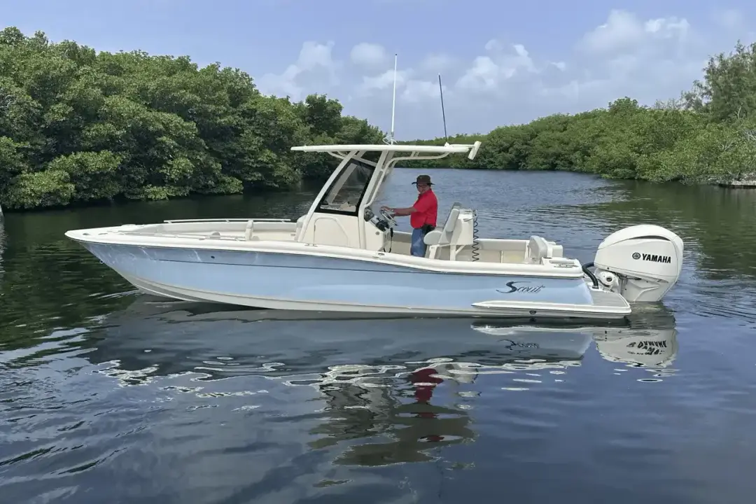 Sleek lines, innovation and high performance make this 240 XSF the hottest boat in its class. Built on our revolutionary NuV3 fuel efficient hull design, this forward seating center console model is ready for the open water, but will also save you money at the fuel pump. We’ve incorporated a longer outboard shaft so that we could do away with the transom splash well, creating a level full-access swim platform for safer access and use. LED lighting – including rope lighting and unique underside hardtop lights that are perfect for illuminating the boat during pre-dawn, dusk or night excursions – fold-away stern seat, aerated transom bait well, forward lounge seating with fish / storage box and overboard pump out, powder coated elite leaning post w/ cooler, rod and cup holders are just some of the numerous standard features available on this model.